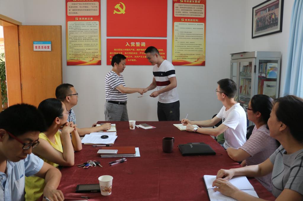 在“主题党课”环节,赵国新同志以《不忘初心,砥砺前行》为主题为大家讲了一堂生动的党课。他说“我们必须牢记在党旗下举起右手时庄严许下的诤诤誓言,这是不忘初心;我们必须牢记在困境时需要履行的责任与担当,这是不忘初心;我们必须牢记在是诱惑前一定要坚守的克己奉公,这是不忘初心;我们必须牢记在灾难时刻“我是党员我先上”,这也是不忘初心!”