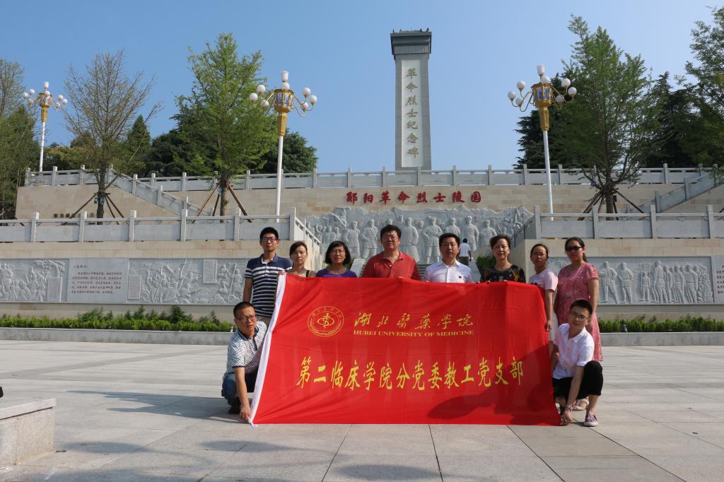 本网讯(通讯员 陈立)7月1日上午8:00,第二临床学院分党委教工支部组织全体党员干部赴郧阳烈士陵园开展“重温党的历史、牢记党的宗旨、践行群众路线、一心为民服务”为主题的7月份支部主题党日活动。学院李斌院长、邵义光书记、马霞斐书记以普通党员身份参加了支部主题党日活动,特邀无党派人士李秀楼院长观摩了该次活动,活动由教工支部书记陈立主持,二院全体教工党员参加。