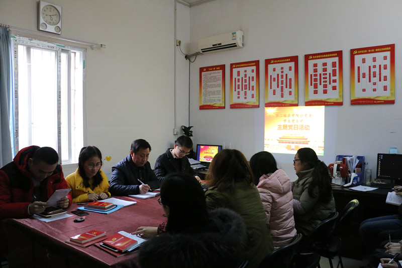 活动严格按照学校7+X模式开展。全体党员佩戴党徽,起立齐唱国歌;面对党旗庄严宣誓,重温入党誓词;集体诵读党章。集中学习《中共中央关于认真学习宣传贯彻党的十九大精神的决定》、10月27日十九届中共中央政治局会议主要精神、系统学习党的十九大报告原文,深刻领会新时代、新思想的核心要义和丰富内涵、重点学习党的十九大审定通过的《党章(修正案)》新修订部分内容、认真学习市委书记张维国在全市领导干部学习贯彻党的十九大精神集中轮训班开班讲话及辅导报告主要精神、市委《关于认真学习宣传贯彻党的十九大精神的通知》、校党委《关于扎实做好学习宣传贯彻党的十九大精神的通知》、再次学习2017年度“双十星”“党员示范岗”“一组织一品牌”创建活动方案。根据十堰市《关于组织开展2017年“12.4”国家宪法日系列法治宣传活动的通知》要求,还学习《宪法》第三章国家机构里面的第一节全国人民代表大会。